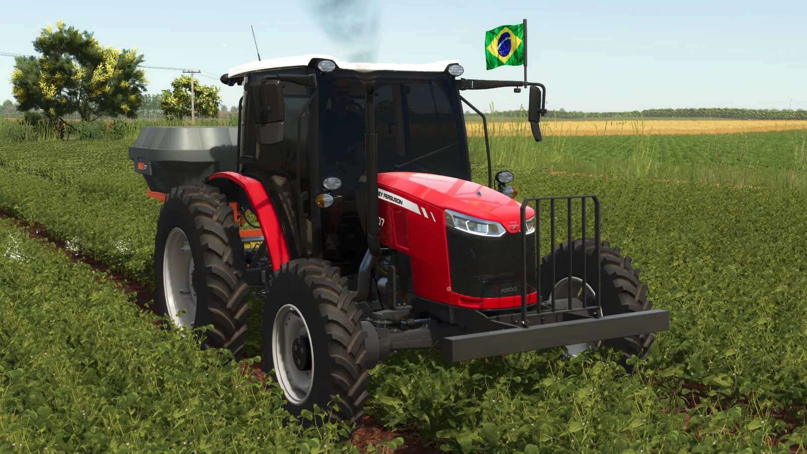 This model also features rice field wheels from SCARABELOT, a Brazilian brand officially licensed in Farming Simulator.