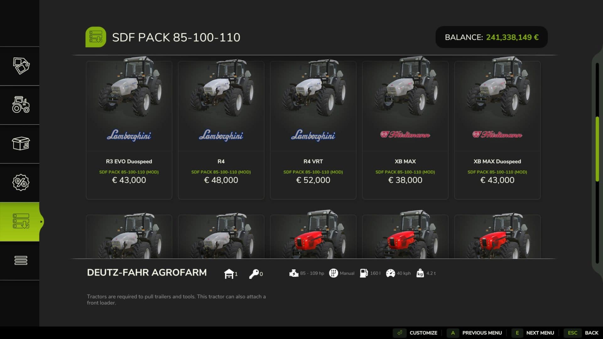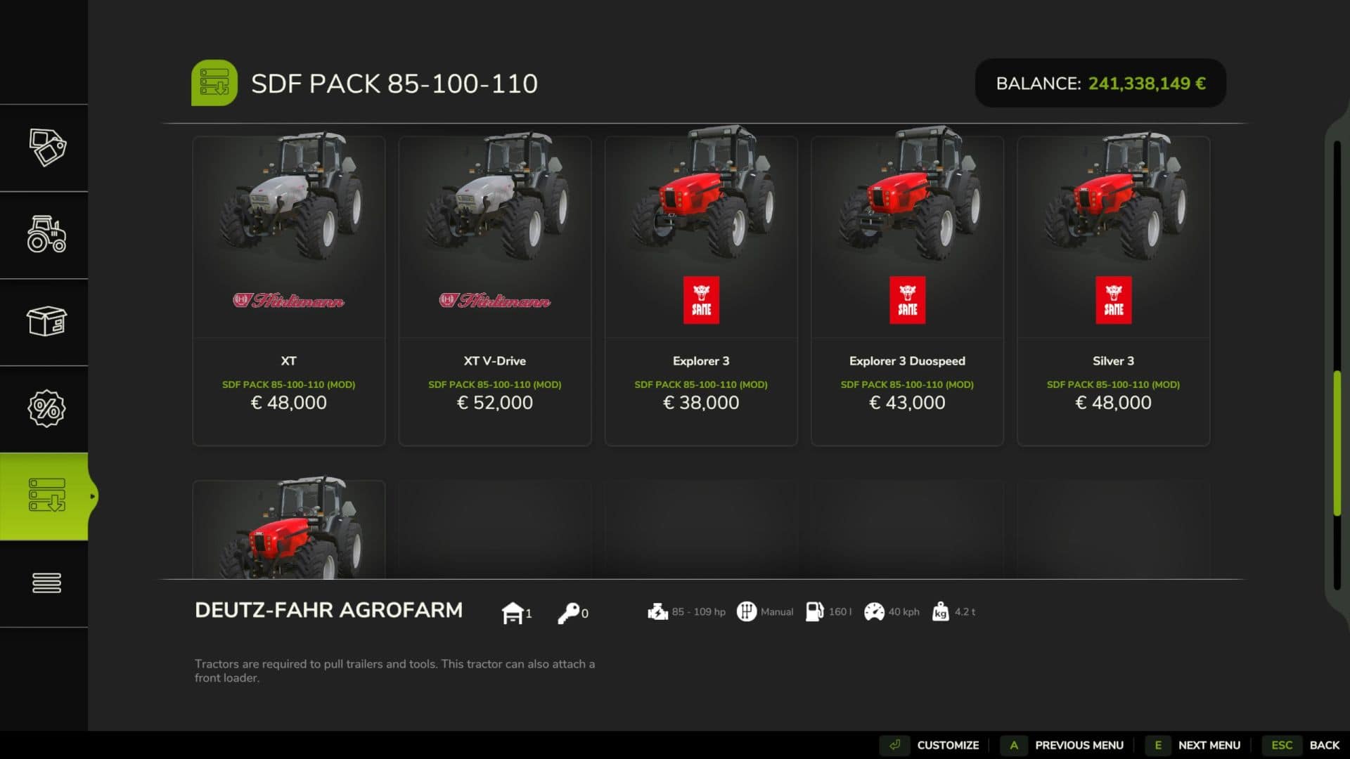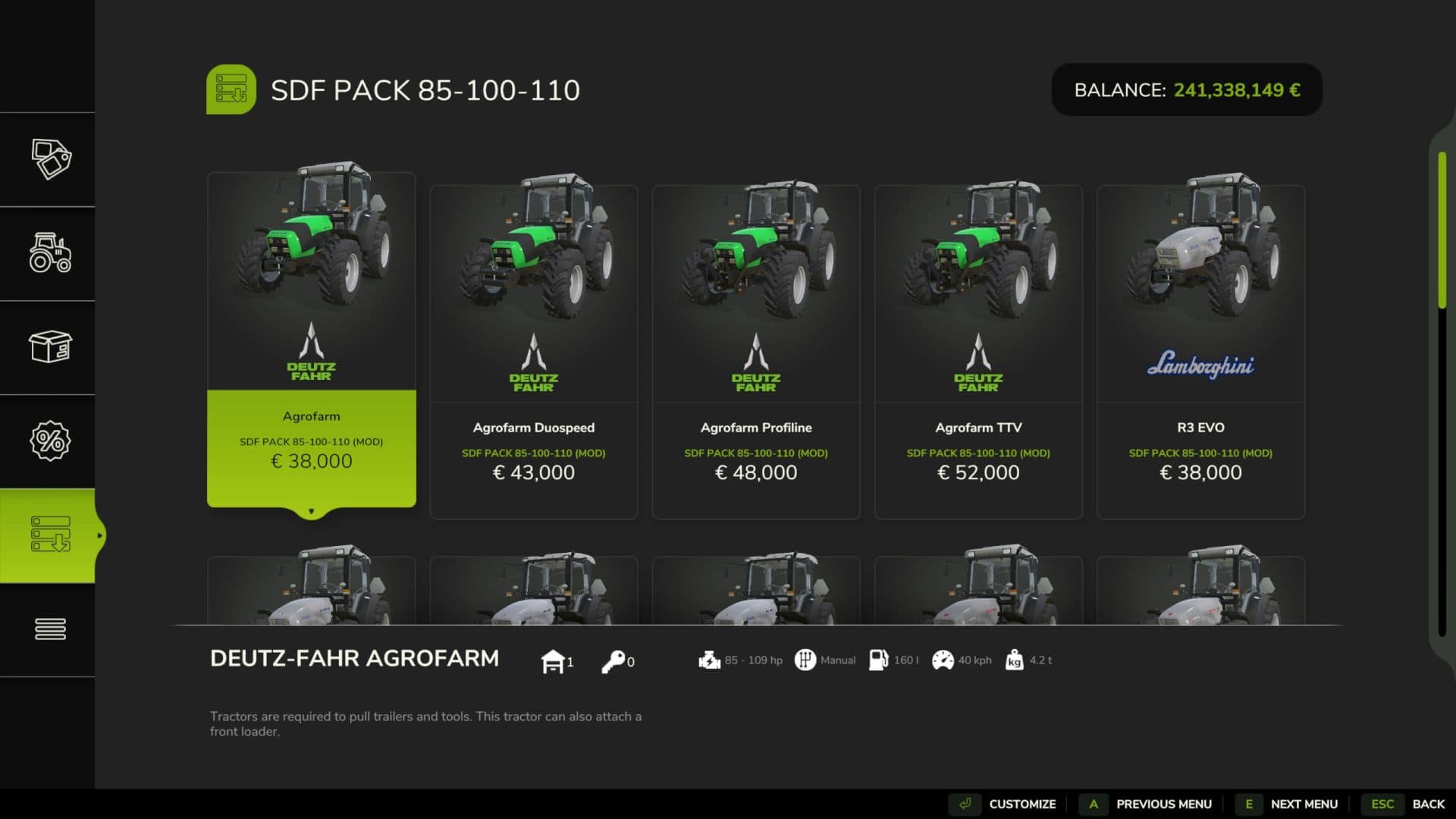 Finding a game interesting after investing 300 hours into it can become a bit challenging. But with mods as long as there is a new update is assured, you are guaranteed a few more hours of new exciting gameplay. FS 25 Packs / FS 25 Tractors Mods are one of the greatest upgrades and can make your game unique. Downloading and adding FS25 SDF Pack V1.0 Mod to your game is not difficult at all - you simply need to save a file and run it.