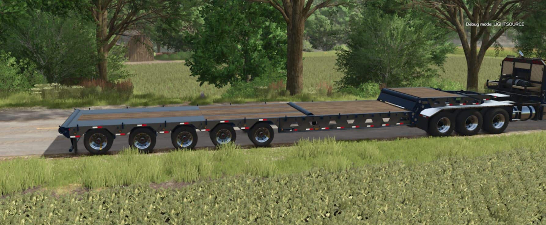 The P series has 3, 4 and 5 axle options with long, short and short extension necks, Has flags, Signage and strobes. Can connect jeeps and boosters. Has tow joints for winch on rear and front of neck. Working rollers with mid lift. Axles are all adjustable to custom fit to truck heights if needed.