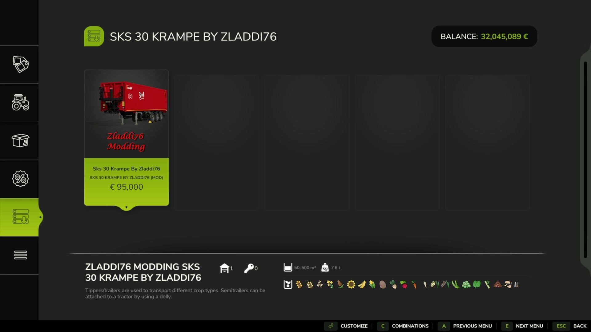 Finding a game interesting after investing 300 hours into it can become a bit challenging. But with mods as long as there is a new update is assured, you are guaranteed a few more hours of new exciting gameplay. FS 25 Trailers Mods are one of the greatest upgrades and can make your game unique. Downloading and adding FS25 Krampe SKS 30 (500.000L) v1.0 Mod to your game is not difficult at all - you simply need to save a file and run it.