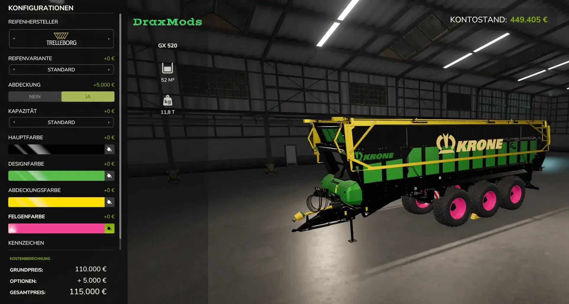 Krone GX520 -Shop price, +Durability +Rim color selection, +Color body, +Color chassis, +Loading capacity.