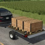 A small platform trailer for transporting pallets and other pallet cargo.