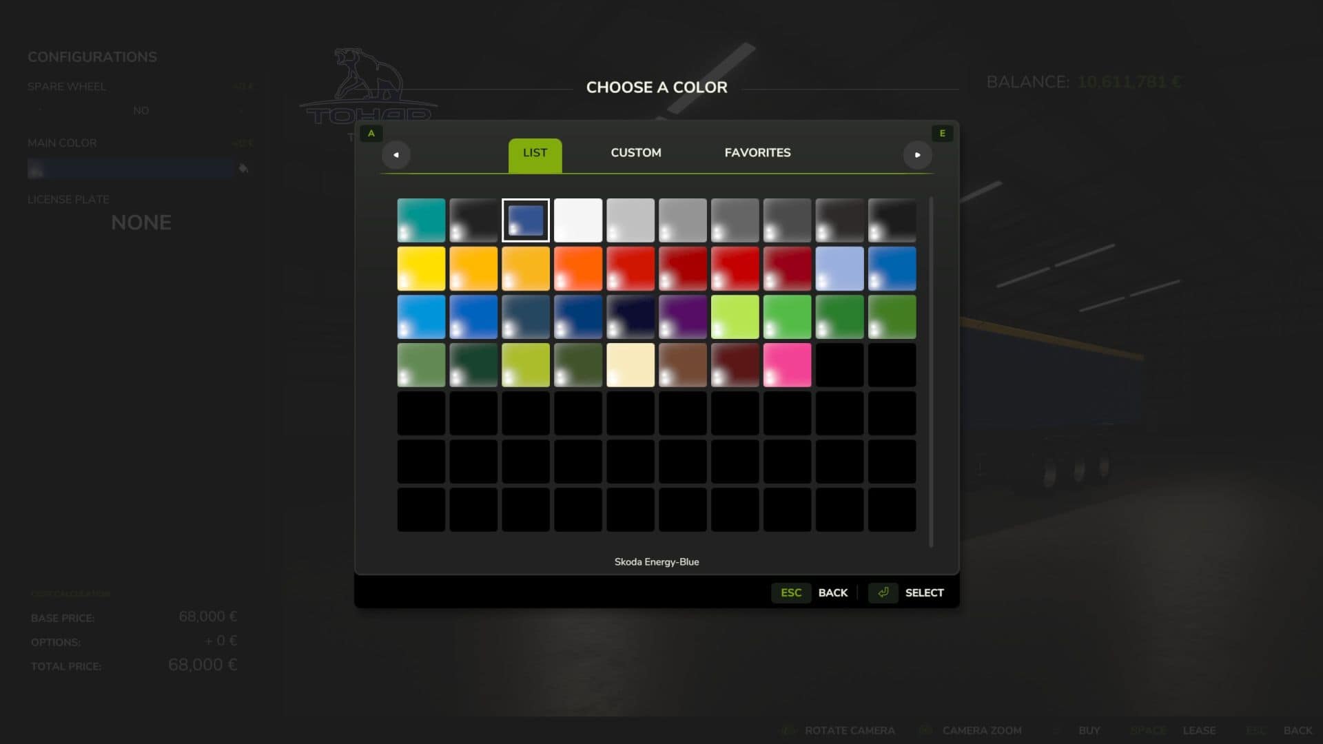 – Configuration options: color, spare wheel.