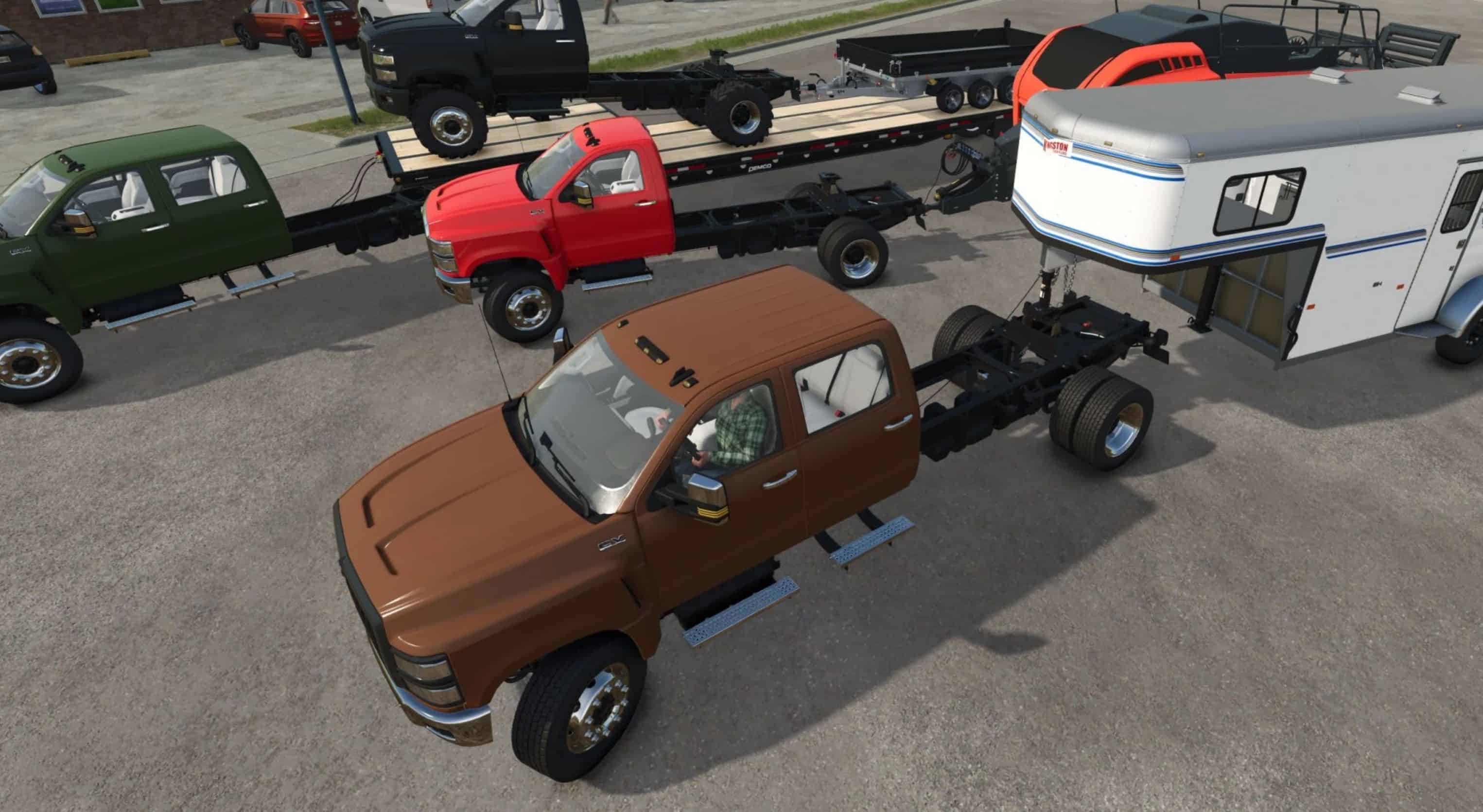 Chassis truck with 5th wheel supports all Semi/Gooseneck Trailers and all bumper pull trailers/implements. Flatbed/Tipper supports all bumper pull trailers/implements. Box truck does not support trailers.