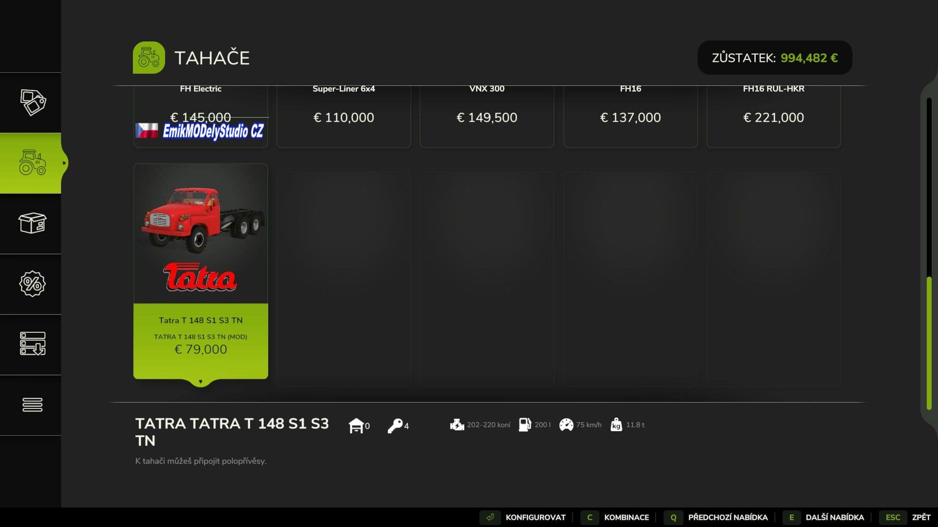 – Trailer S3: price €5900, capacity 11000 l, color configuration, tipping backwards left and right