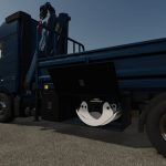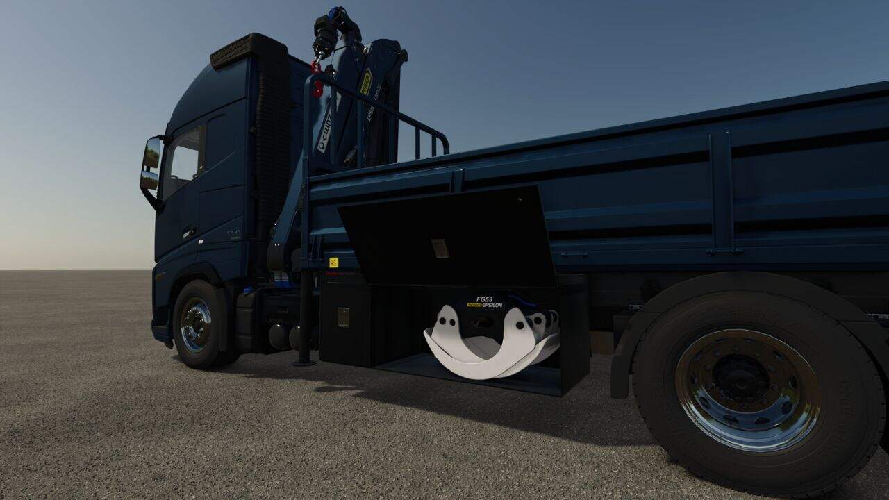 The crane requires separate purchase of interchangeable modules from the store: a log grapple and a hook for loading pallets and big bags. Modules can be placed in the truck’s side boxes (U – select box, Y – open/close box).