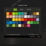 – Color selection for cabin, mirrors, exhaust, attachments, seats, interior, steering wheel, grille and rims